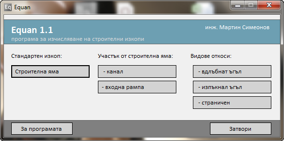 Принципно програмата смята често срещани геометрични фигури в строителните изкопи. Разделянето на такива става ръчно.