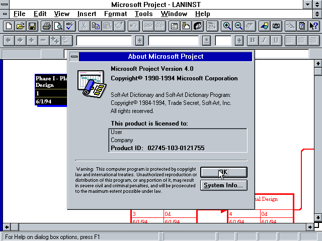 Microsoft Project 4.0, информация