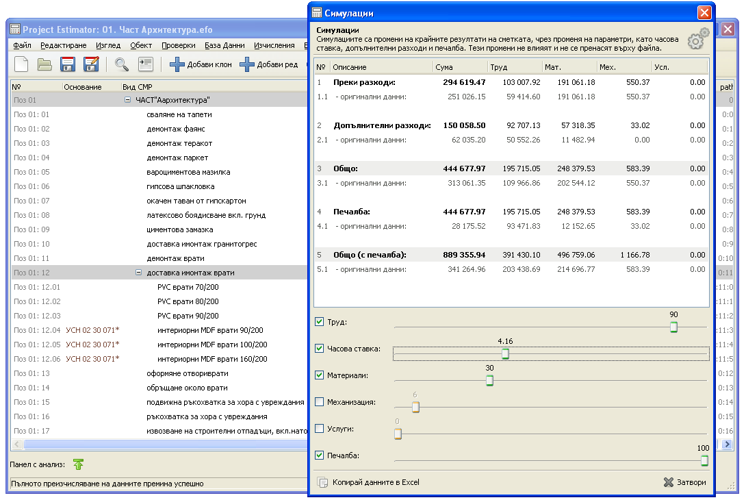 Калибриране на единична цена – тази функционалност позволява един анализ да бъде редактиран по – обратен път с цел получаване на фиксирана единична цена.