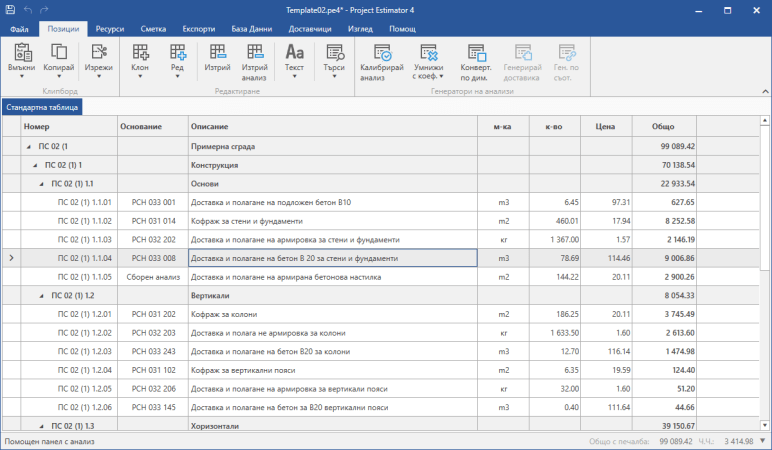 За разлика от другите софтуерни решения със стандартни бази данни, Project Estimator разполага с свои собствени. Това предоставя на потребителите предимство при избор на анализи.